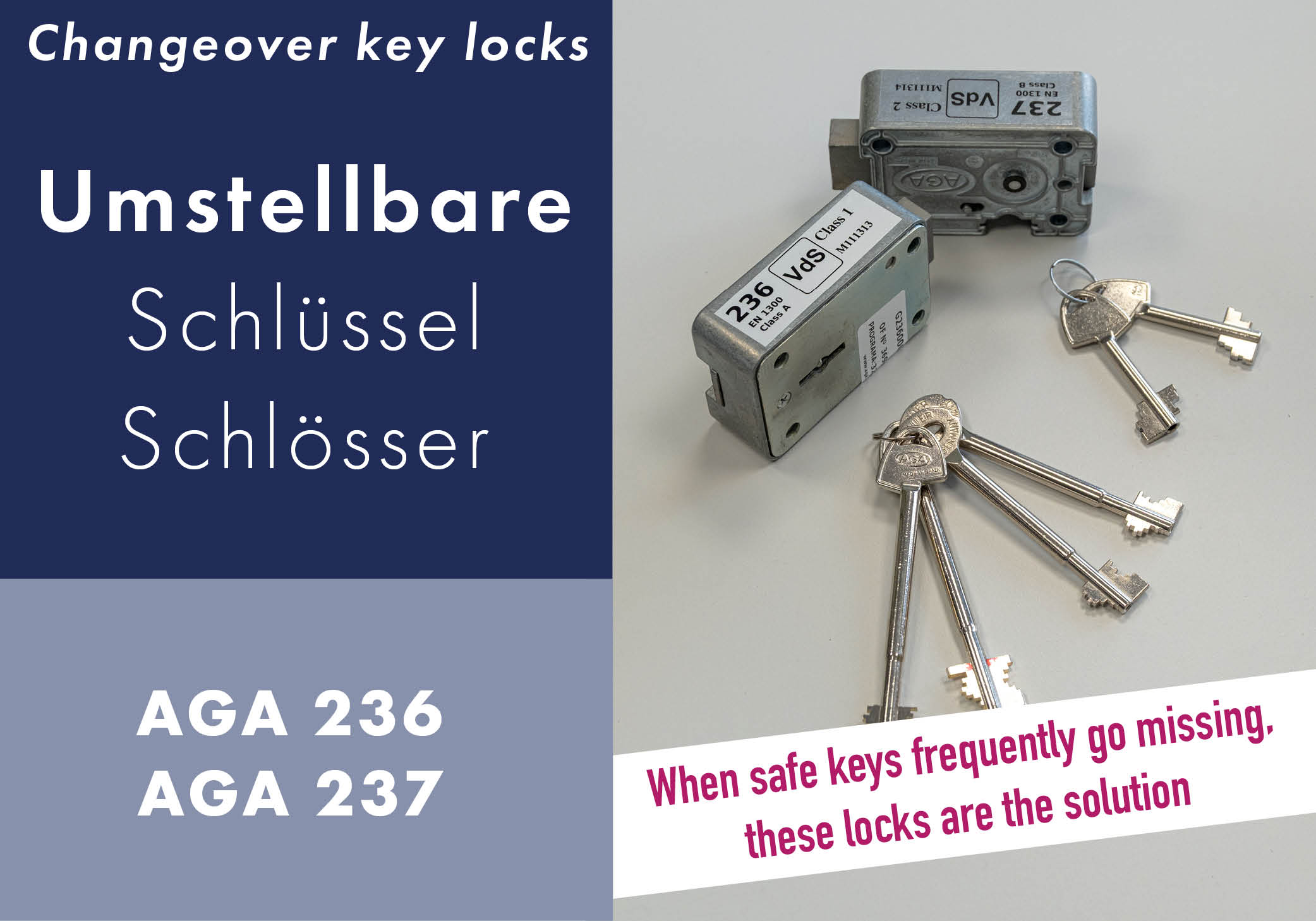 Umstellbare Schlüsselschlösser AGA 236 und AGA 237